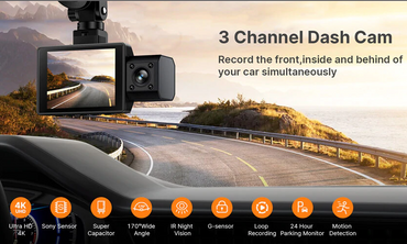 (Price is in US Dollars) Give yourself a peace of mind for every journey with this 3 channel dash cam...