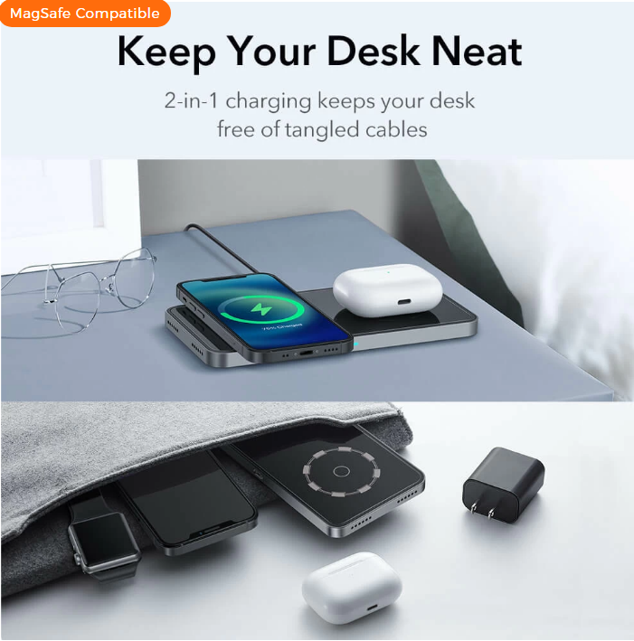 – ESR HaloLock 2-in-1 Magnetic Wireless Charger
