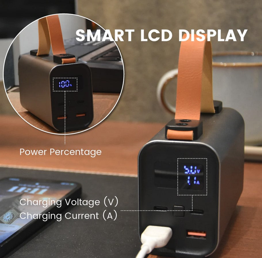 Prepare yourself when every you need, with this powerful portable power bank. With its large capacity, it is ideal for your devices. With 2x USB-C ports and 2x USB-A ports, you can charge different devices. Its smart digital display shows the battery info and input and output power. Powerful, convenience and functional, it is your ideal choice.