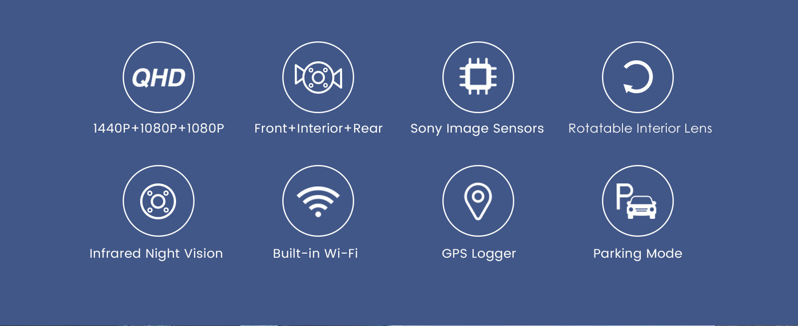 and some other convenience, the T130 3 channels dash camera gives you a peace of mind.