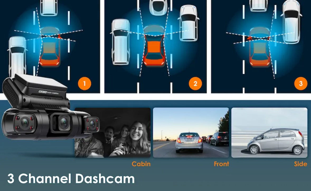 - 3 channel: 3 Lens each with 170 degree viewing angle