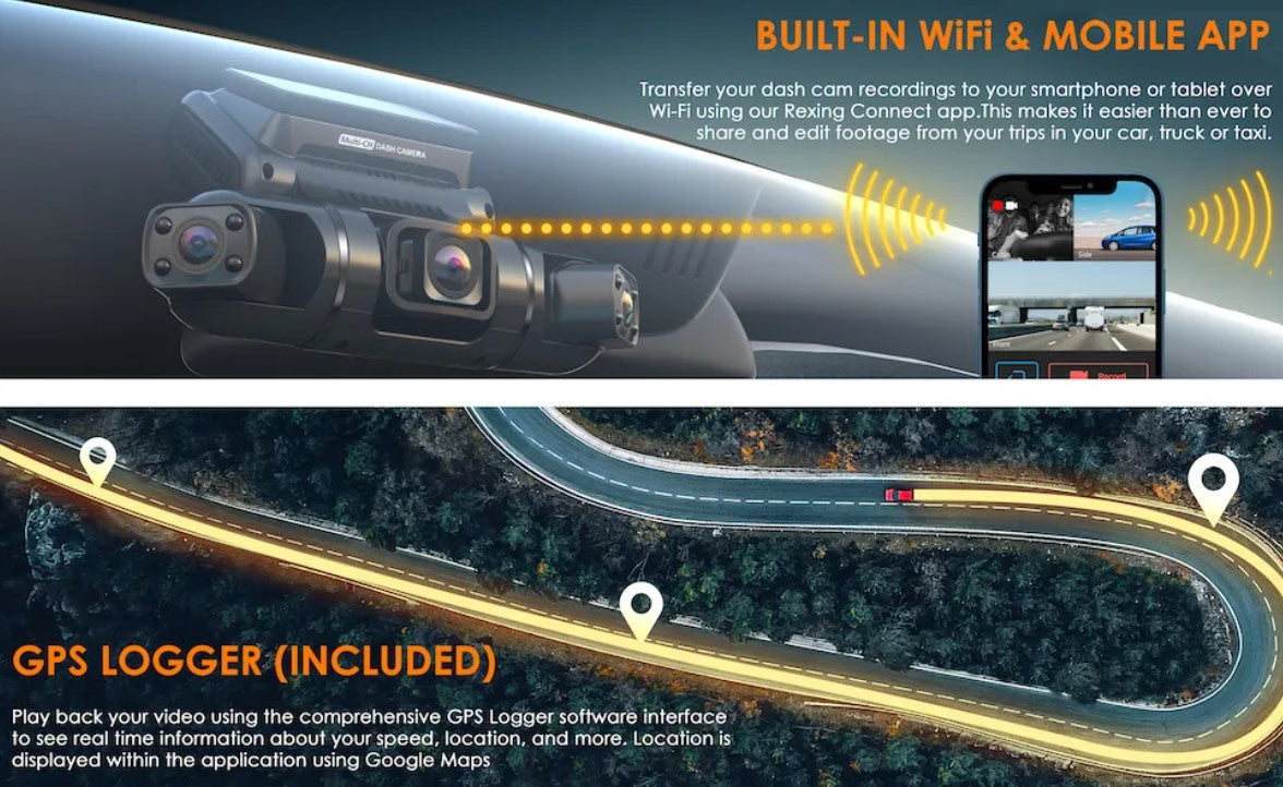 Rexing S3 - 3 Channel Dash Camera with Wifi and GPS logger