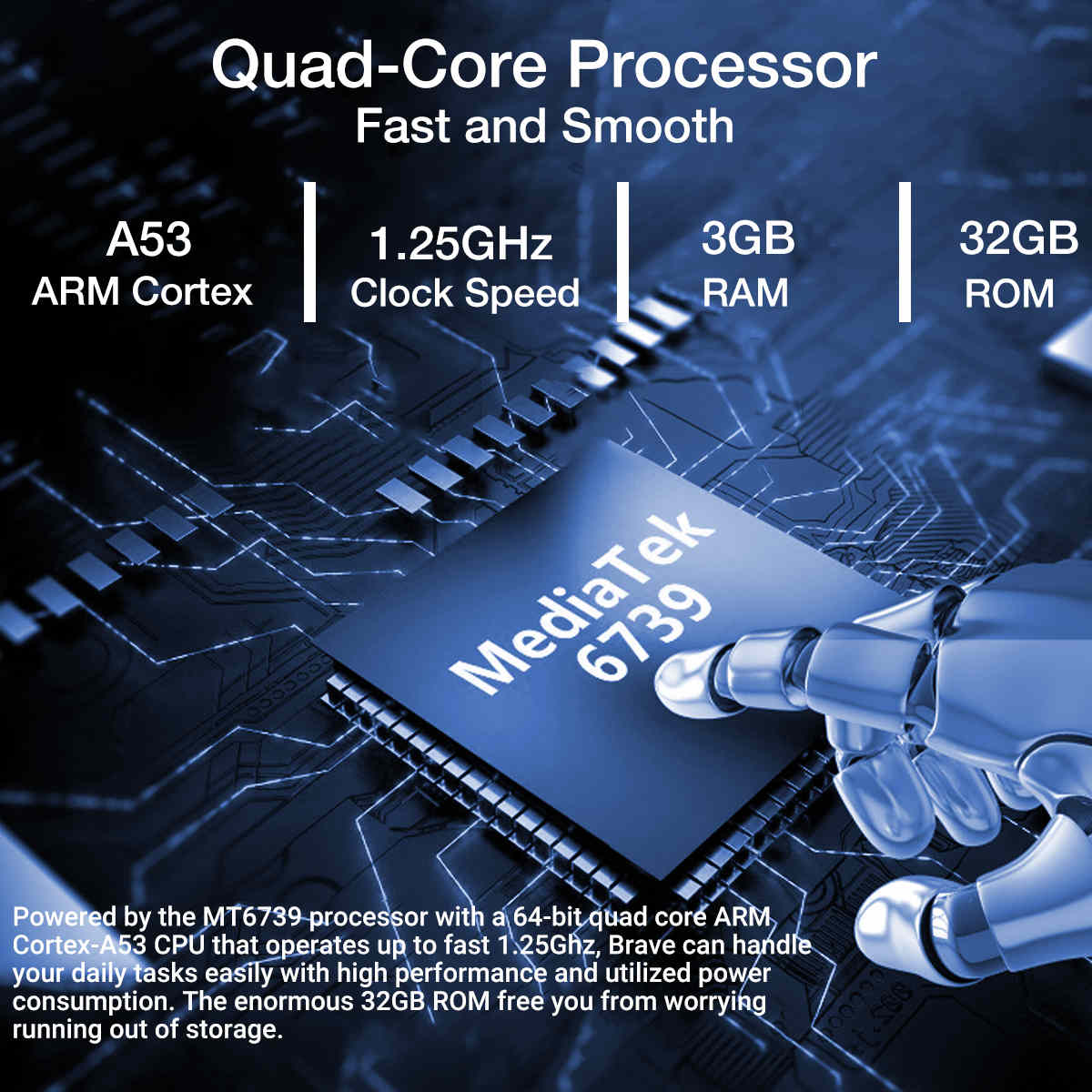 - Advance quad-core processor - MT6739