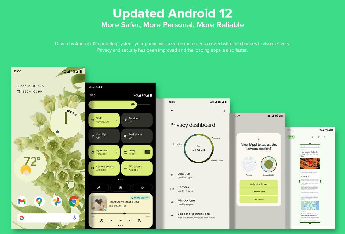 - Smooth and powerful Android 12 OS