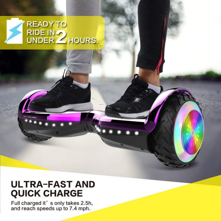 Fast charging time along with cool purple color, this hoverboard is something different.