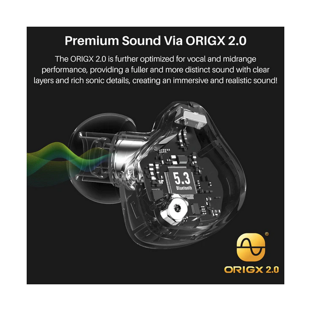 Small and compact, this earbuds should be your choice. With special microphone setup and AI algorithm, it offers user a crystal - clear call and audio experience. With other technologies such as ORIGX 2.0 - to optimizing the vocals and midrange sound performance, to ensure user has a immersive and realistic music and sound. Elegant, and smooth semi-transparent like design, had an added another special features to this impressive bluetooth earbuds.