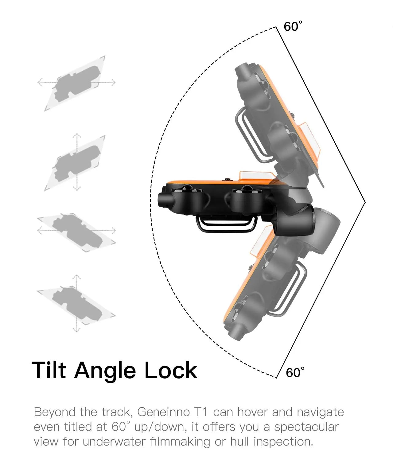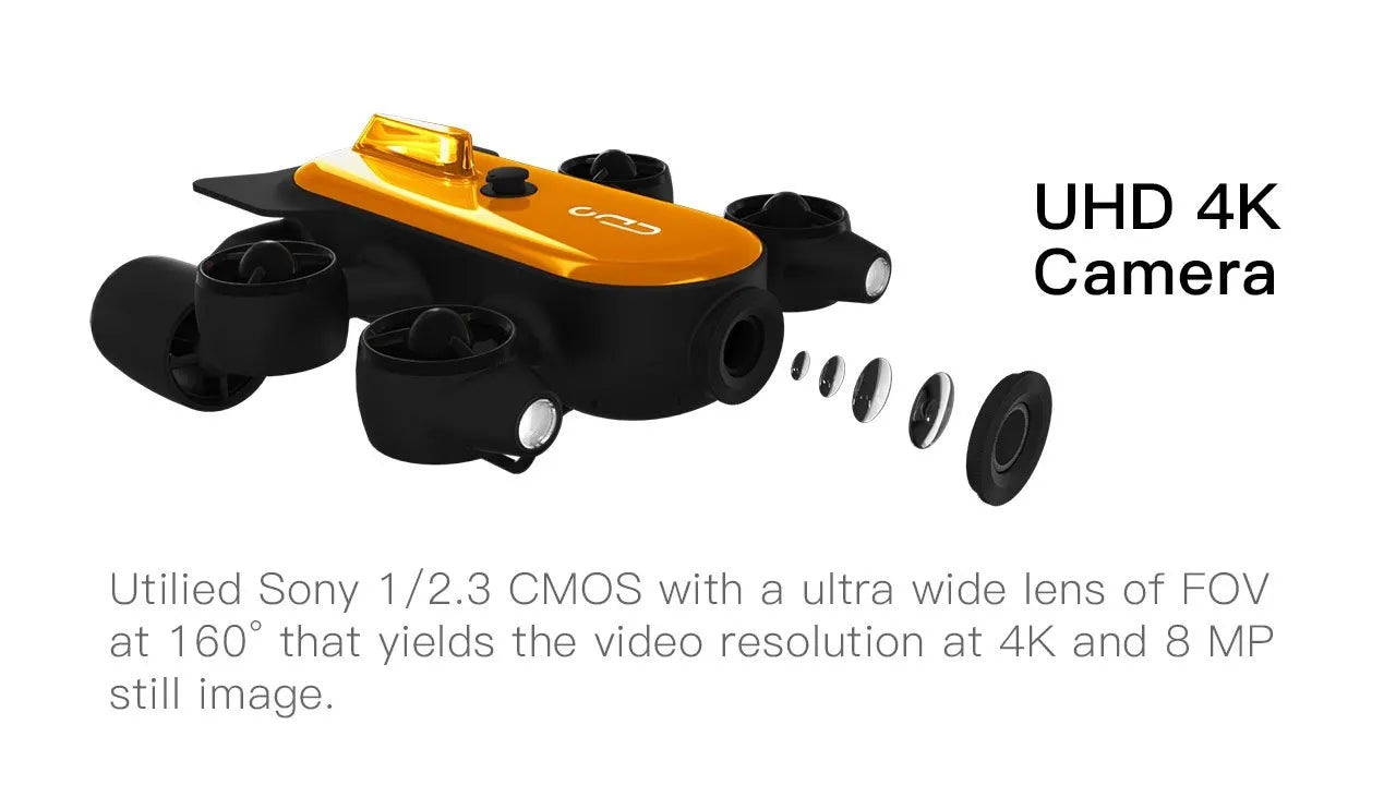 T1, is one of the most advanced diving drone available. It has the maximum diving depth of 492ft; along with 6 powerful thruster for maximum 2m/s. T1 also can tilted 60 degree up or down.