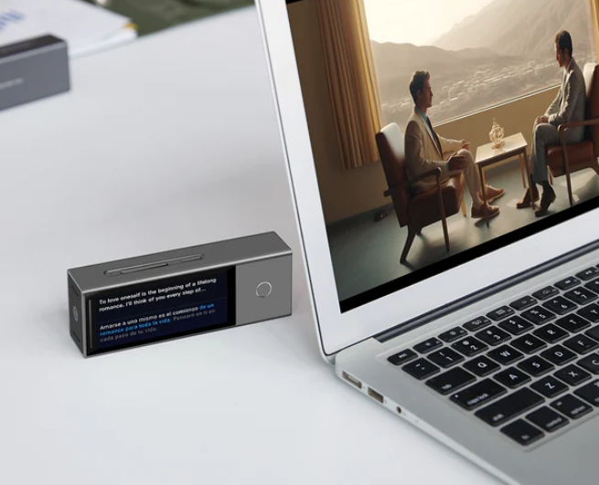 Discover a new way of translating with this powerful translating hub/device. This is one of the ear-bud type translating device/hub available on the market. It can use it as one-to-one translating, remote voice call/meeting translating, convenience listen and play translating, hand-held translating mode, and even large meeting - multi-person translate mode and much more !!!