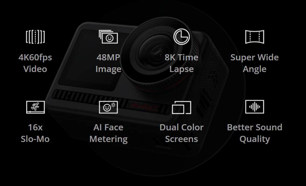Introducing Brave 8 action camera from Akaso; an action camera that is design and packed with advance and functional features. Such as: 4K videos, 48mp image, 8k time lapse feature, wide angle, AI face detecting, advance image stabilization technology, super slow-motion 16x and etc.