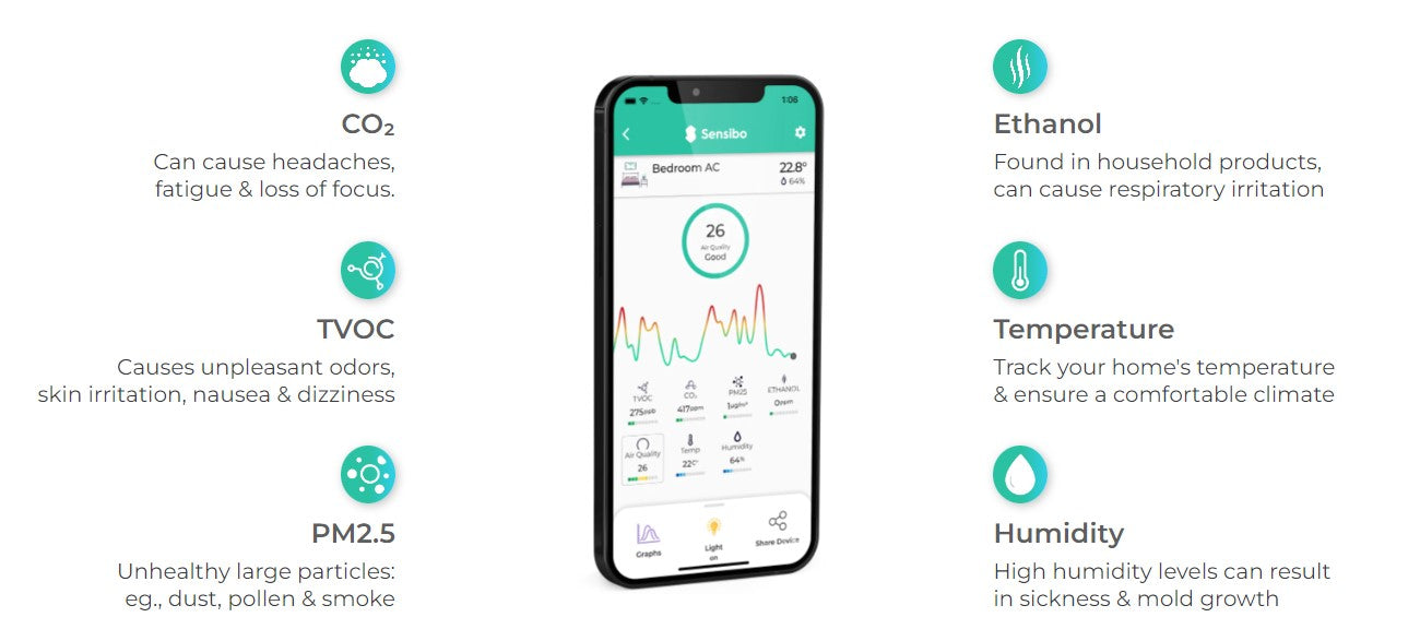 - Details information about your indoor air quality to your phone