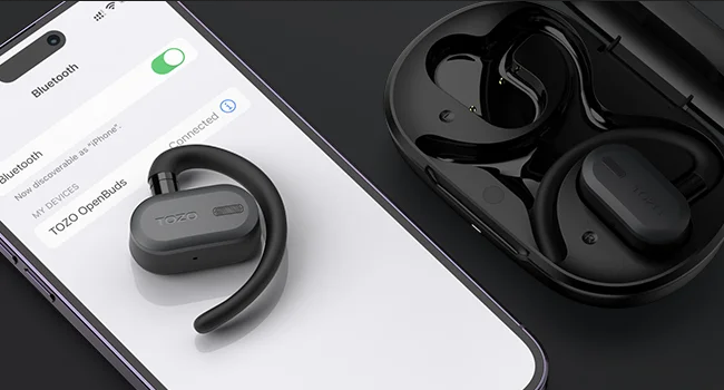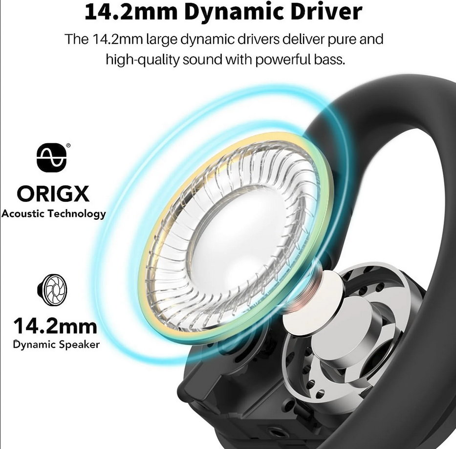 Other than standard bluetooth earbuds, this bluetooth earbuds is a special one. It features an open design with adjustable axis design for maximum comfort. Feature powerful and bass, powerful large driver, advance noise cancellation, connection for dual devices, and much more !!!