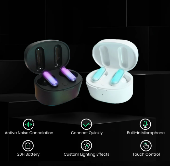 There are different TWS bluetooth earbuds available in the market, but none of them as unique as this; the first bluetooth earbuds that has a light. User can have different light modes to choose from such as wave, pulse, breath, rhythm response and etc. In terms for function, it has advance active noise cancellation technology, to ensure clear audio experience. While powerful speaker design to deliver premium audio quality. In terms for style, a wide range of optional shell to choose from.