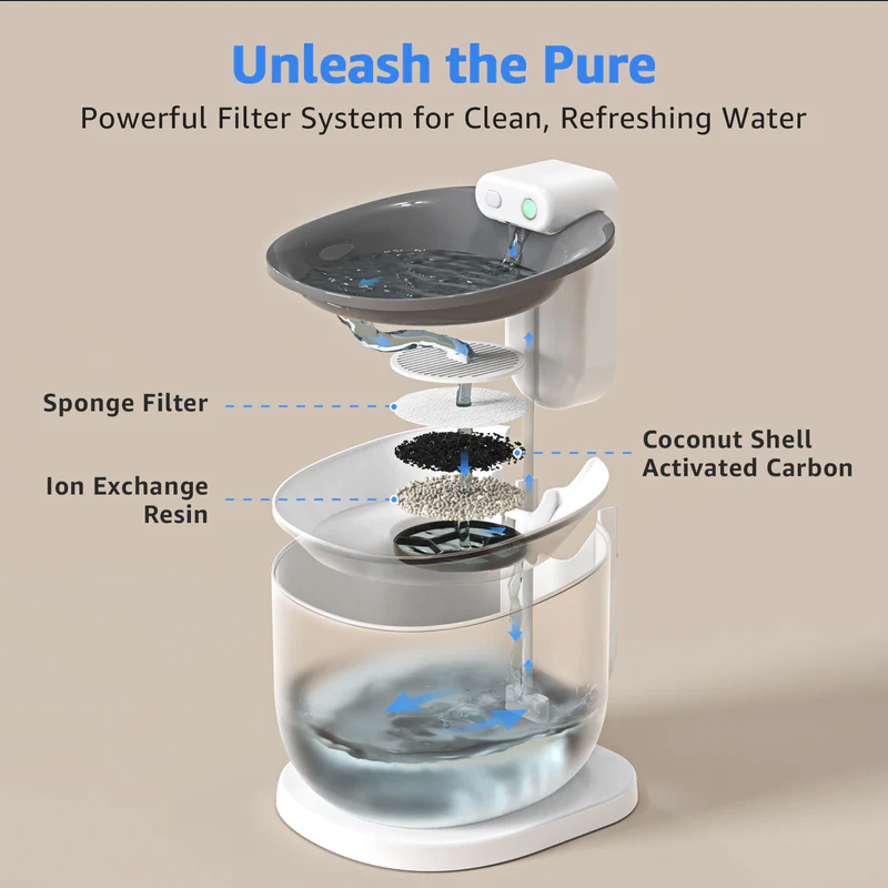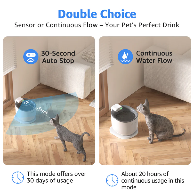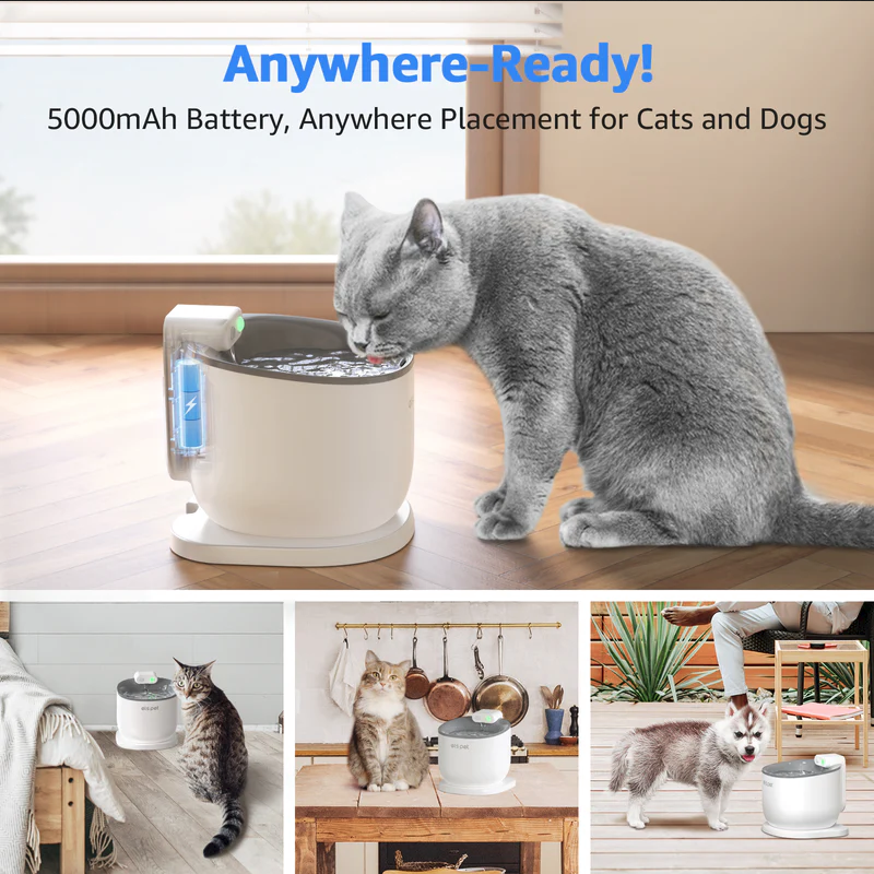 This advance cat water fountain give your beloved cat another way to drink water. With two water flow modes, cordless design with large battery capacity, large water capacity, smart indicator, and much more.