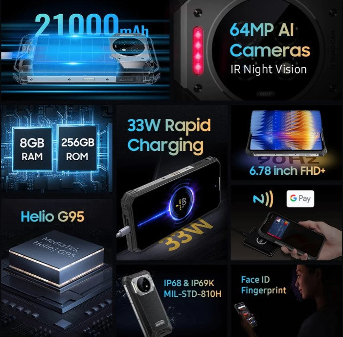 This is WP 19 Dual 4G rugged smartphone from Oukitel, and other of their amazing rugged smartphone. It features advance features such as 6.78 inch FHD display, advance Mediatek Helio G95 processor, Android 12 OS, Fingerprint/Face ID, and etc. The WP19 is another amazing smart for you.