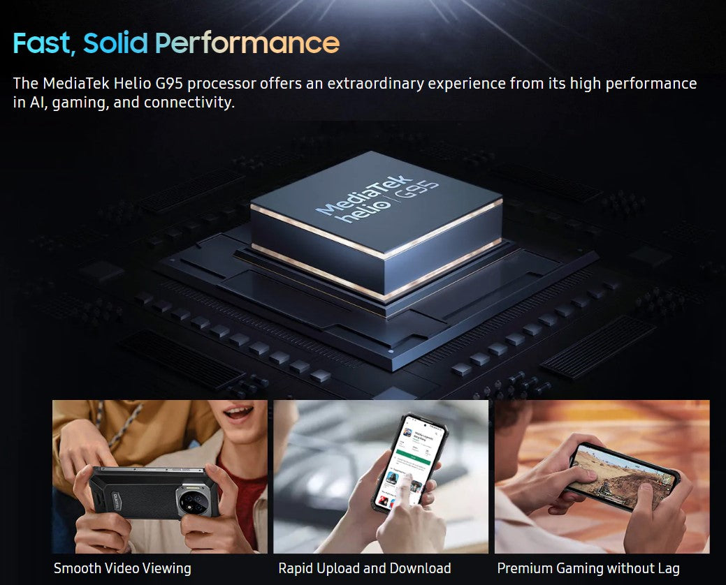 - Advance MediaTek Helio G95 processor -- for solid and smooth performance