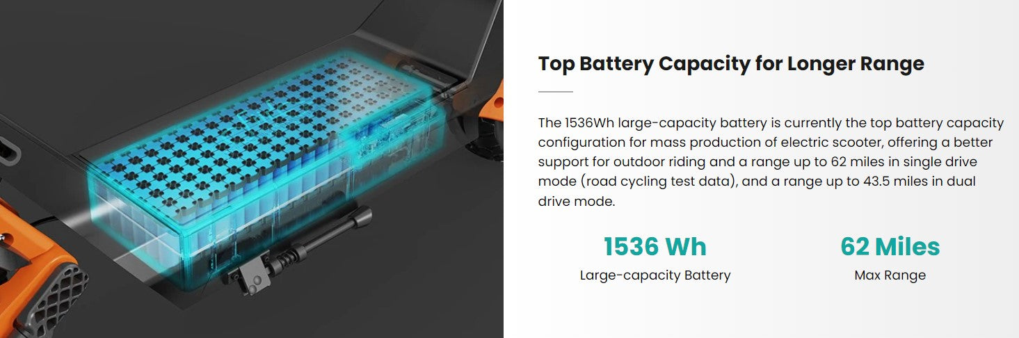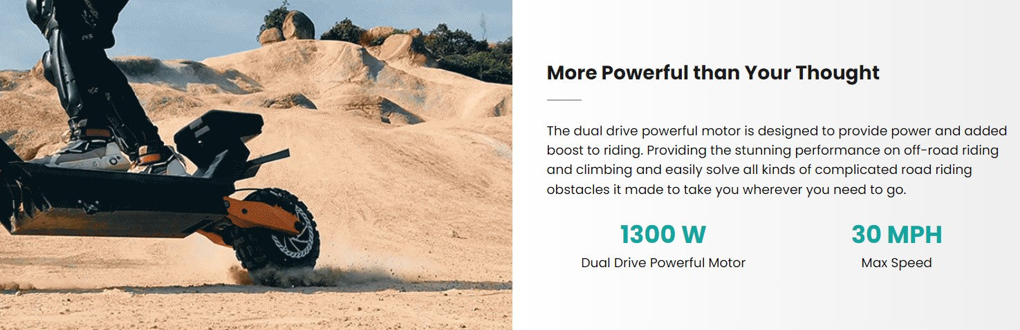 - Smooth and powerful motor : 1300W - with Max. speed of 30MPH