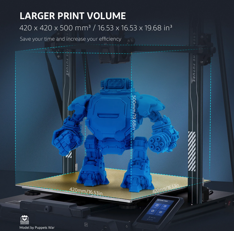 Turn your idea into an actual product with this advance 3D printer. With this 3D printer and its technologies such as direct extruder (dual-gear), large print volume, quiet and stable printing, functional and etc. It can takes on any tasks and projects.