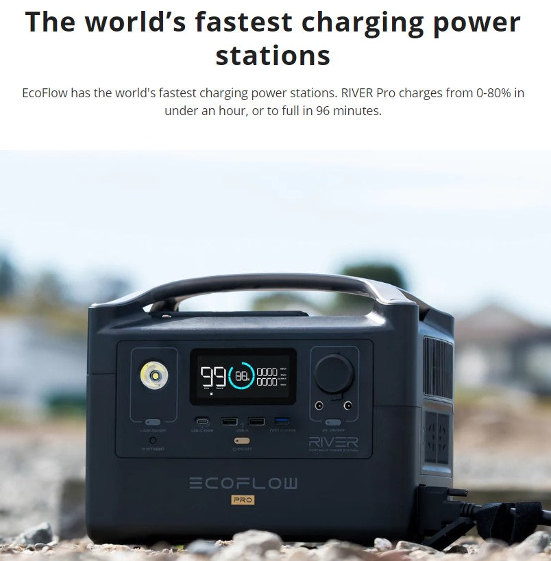 This is River pro - from EcoFlow; a small but powerful portable power station. It features different output ports for different devices and purposes. With its advance technologies, it is reliable and provide you with smooth, powerful and reliable power, whenever you need.