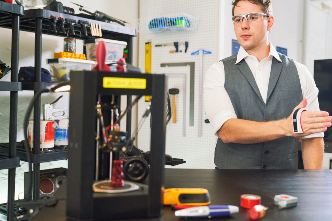 Tactigon Skiln developer kit is a wearable gesture device that can be programable for different purpose such as to control robots, PC games, VR, drones, app and many other program. It uses Arduino language and easy platform, so programming is simple and functional.