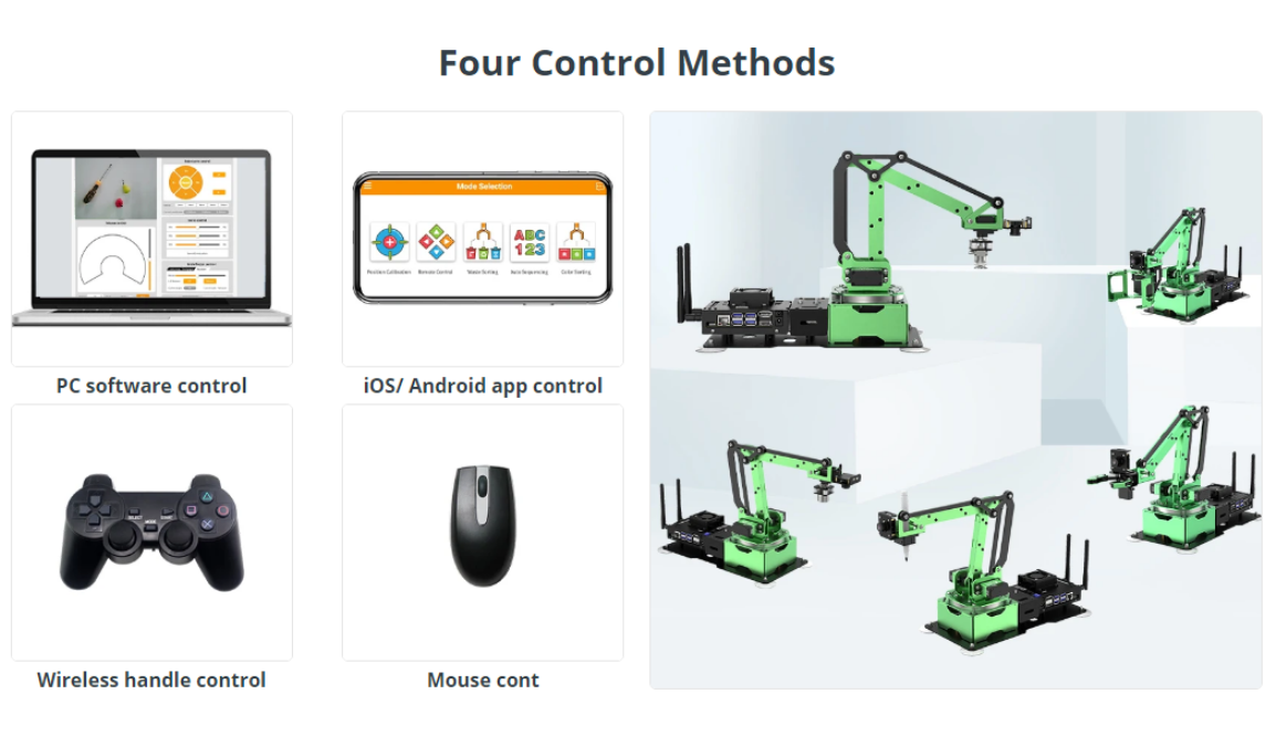 Enjoy learning and programming with this amazing robotic arm unit. Made the flexibility, it can perform different task with its advance features. This robotic unit can also re-program with app, deep learning, advance model training, control by handle remote or app and many other features.