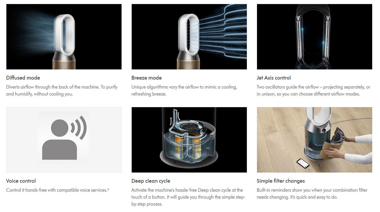 With advance technology from Dyson, this purifier is more than just a air purifier. It features the most advance filtering system that can detect and capture smallest particals in the air. Easy to control, it also feature air quality monitor, that automatically control the unit; as well as inform you the actual data. There are many impressive features.