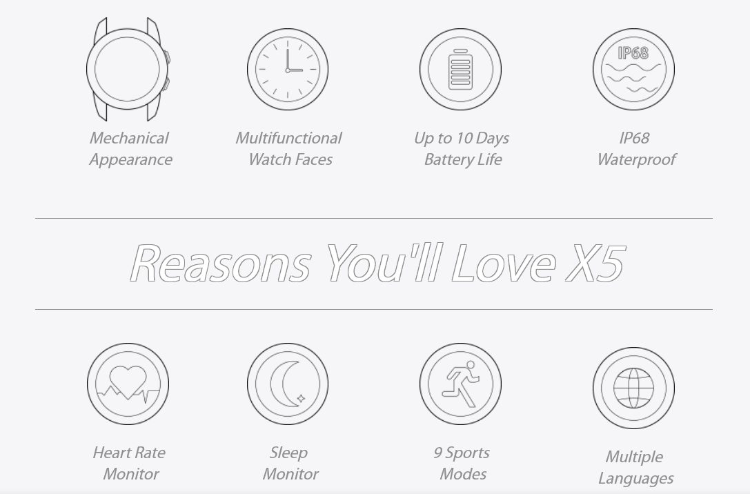 Now you can have a peace-of-mind knowing that you have a very good smartwatch that has all the features that make your life easier and monitoring your health exercises. Feature such as: large screen, text/app and call notifications, phone-camera remote control, weather and much more !!!!