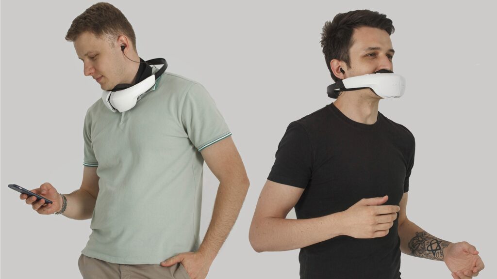 Introducing this functional voice muffling device. This device features special insulation material inside the mask, as well as hypoallergenic material for the mouthpiece. So individual at the distance up to 3 feet, won't be able to hear your words. Also it can connected with bluetooth and in a headphone, where you can talk on the phone, with this device to cancelled out the surrounding noise.