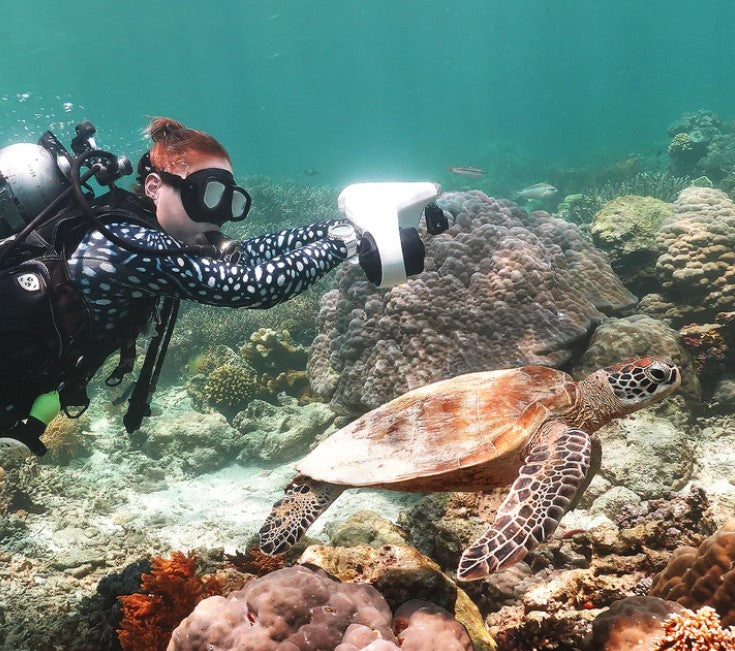 Introducing Manta S Sea Scooter. Now you can enjoy a bit more, while exploring through under-water world. Build in light weight structure, it is easy to carry and control. With powerful motors with 3 speed-gear, you can explore where ever you want to go.