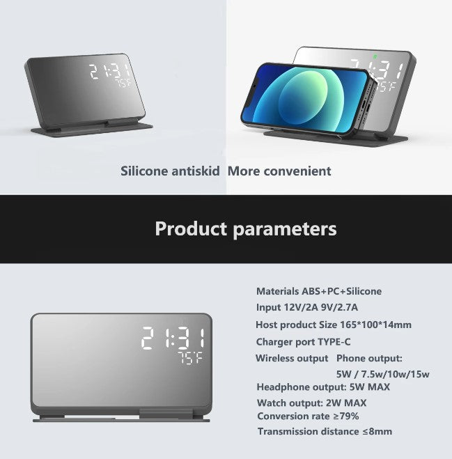 TGA-SC14 - Wireless Charging Station with Alarm Clock and Temperature Display