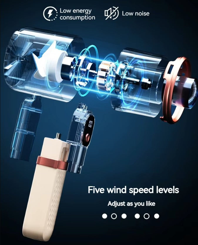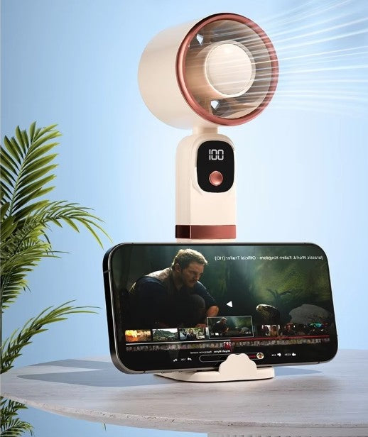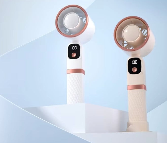Enjoy more in summer with powerful and convenience portable handheld fan with detachable powerbank. Come with large display for battery level and it has a quiet and powerful motor; along with 5 adjustable speed levels. Its detachable powerbank, add another convenience touch to this fan. Comes with table stand, and it can also be used as phone stand as well.