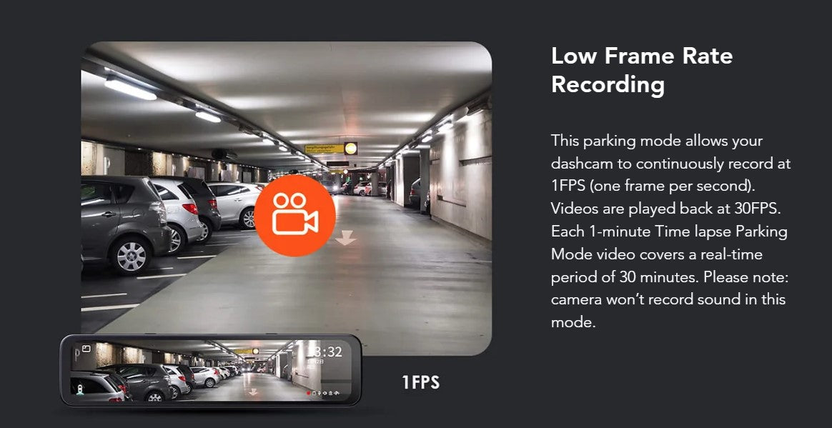 - Parking mode with motion and collision detection --- (Require hardwire Kit - sold separately)
